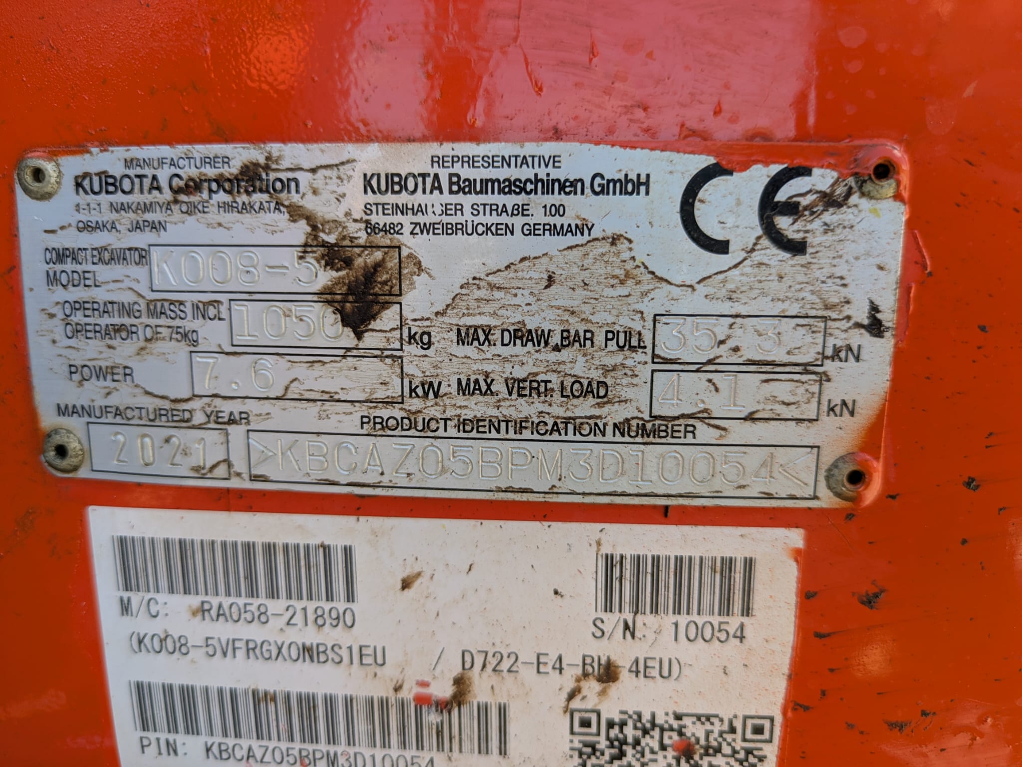 Serial Number | KBCAZ05BPM3D10054 |