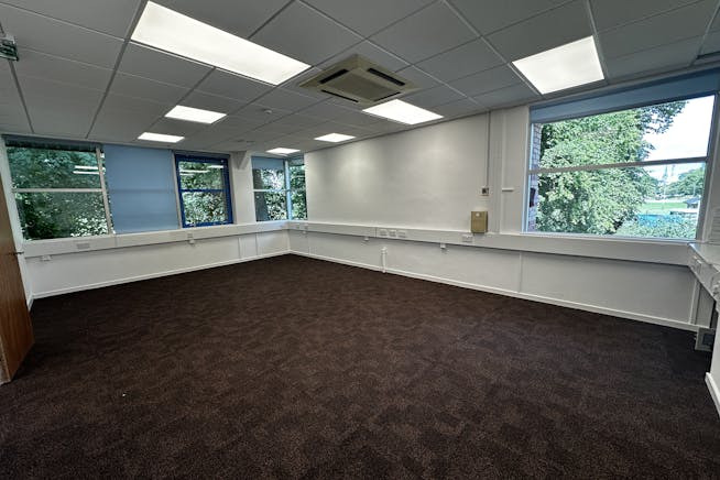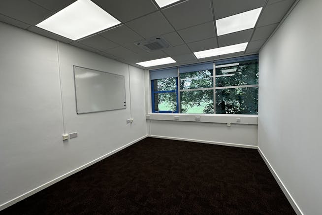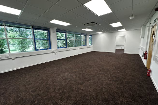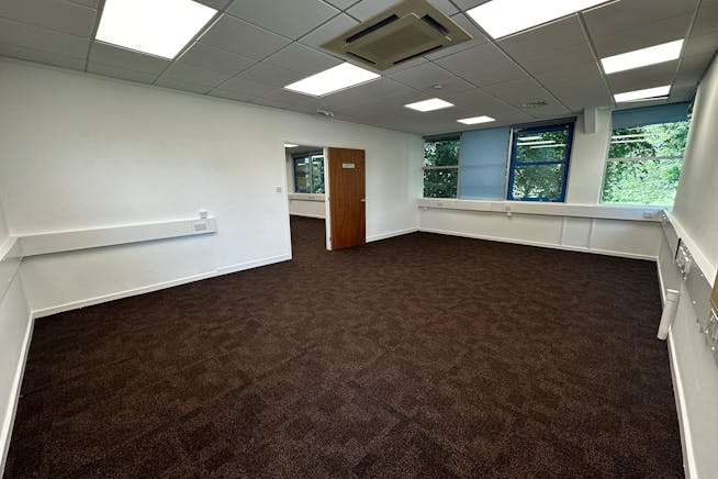 The property offers a modern first-floor office suite within a well-established business centre. The layout is mixed open-plan and cellular.